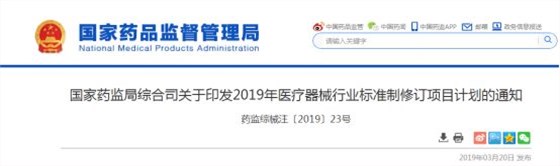 3月20日,國(guó)家藥品監(jiān)督管理局發(fā)布《關(guān)于印發(fā)2019年醫(yī)療器械行業(yè)標(biāo)準(zhǔn)制修訂項(xiàng)目計(jì)劃的通知》(藥監(jiān)綜械[2019]23號(hào))。