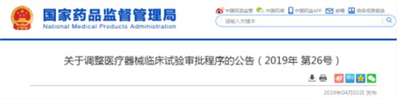 4月1日,國(guó)家藥品監(jiān)督管理局發(fā)布《關(guān)于調(diào)整醫(yī)療器械臨床試驗(yàn)審批程序的公告》,表示對(duì)醫(yī)療器械臨床試驗(yàn)審批作出調(diào)整,進(jìn)一步優(yōu)化臨床試驗(yàn)審批程序。