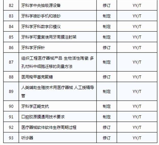 此前,國(guó)家藥品監(jiān)督管理局組織開(kāi)展了2019年醫(yī)療器械行業(yè)標(biāo)準(zhǔn)制修訂項(xiàng)目遴選工作。經(jīng)公開(kāi)征求意見(jiàn)和組織專家論證,此次《通知》確定了2019年93項(xiàng)醫(yī)療器械行業(yè)標(biāo)準(zhǔn)制修訂計(jì)劃項(xiàng)目,包括括聽(tīng)診器、皮內(nèi)針、醫(yī)用診斷X射線機(jī)通用技術(shù)條件等,具體項(xiàng)目如下: