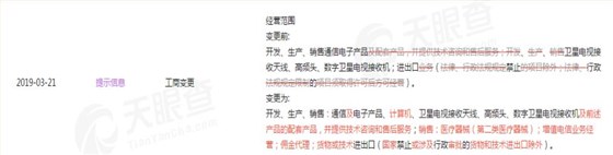 變更之后,華為終端有限公司的經(jīng)營范圍為開發(fā)、生產(chǎn)、銷售:通信及電子產(chǎn)品、計算機、衛(wèi)星電視接收天線、高頻頭、數(shù)字衛(wèi)星電視接收機及前述產(chǎn)品的配套產(chǎn)品,并提供技術(shù)咨詢和售后服務(wù);銷售:醫(yī)療器械(第二類醫(yī)療器械);增值電信業(yè)務(wù)經(jīng)營;傭金代理;貨物或技術(shù)進出口(國家禁止或涉及行政審批的貨物和技術(shù)進出口除外)。