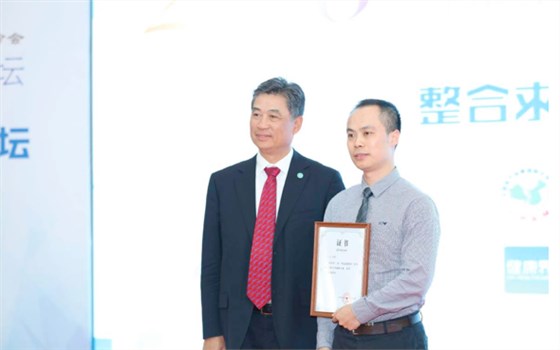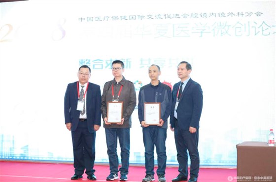 京東中美醫(yī)院院長伍冀湘為視頻大賽獲得冠軍的青年醫(yī)師頒獎(jiǎng)